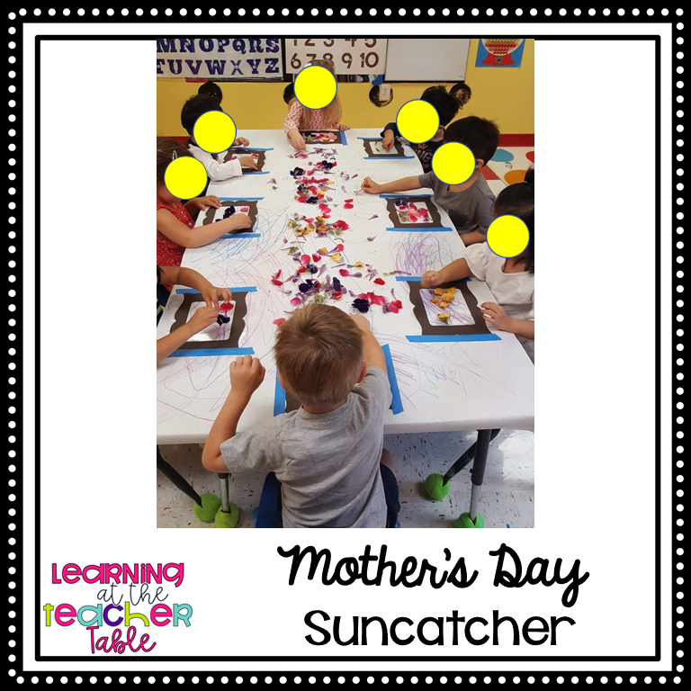 Lay a small piece of contact paper on the table and have the student stick down flower petals of their choice. Once they've covered the contact paper with petals, add a frame made from cardstock or construction paper, and laminate. These flower petal Suncatchers can be hung in a window where mom will be reminded of her little one who made it especially for her!